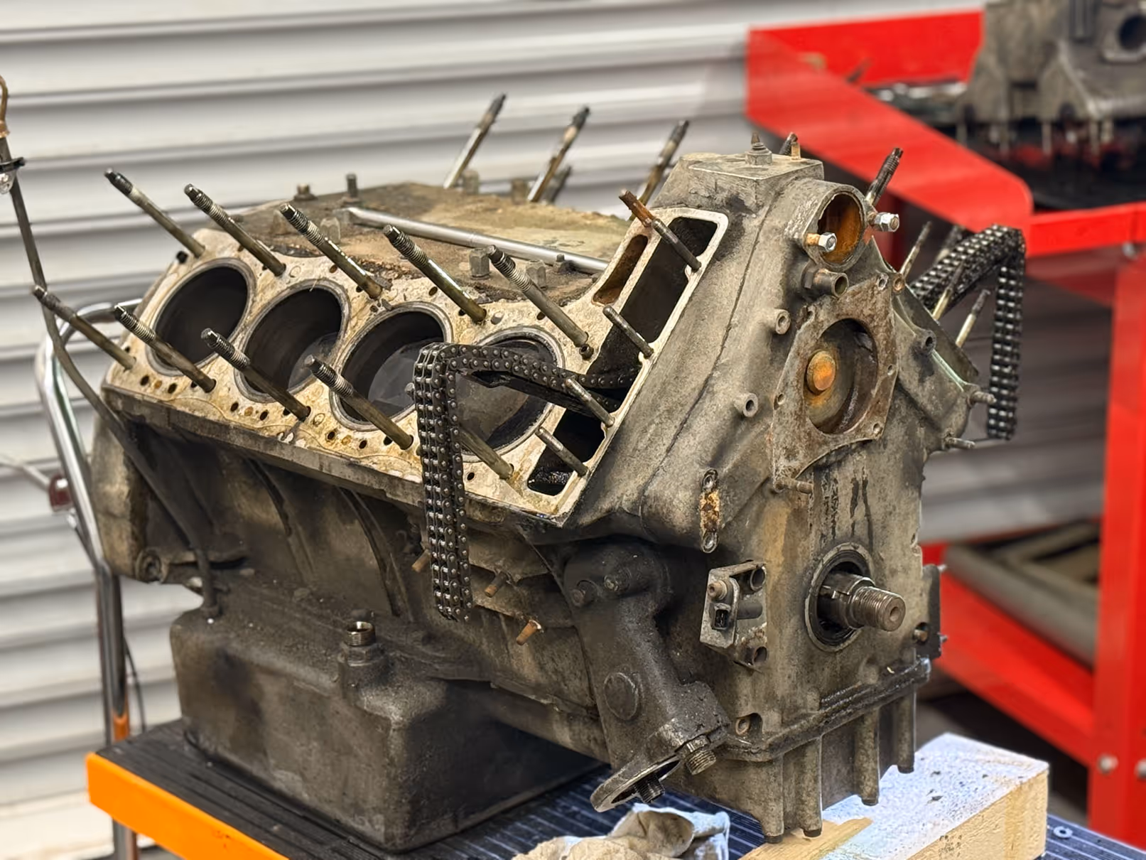 This AM V8 engine, rebuilt in the 1990s and upgraded to Vantage X-Pack specification, is now undergoing a comprehensive rebuild to 5.7L capacity here at Hutson Engineering Services.
