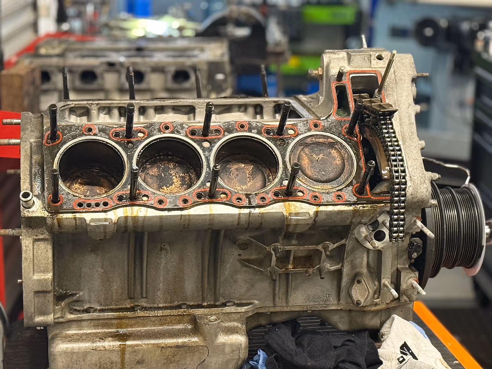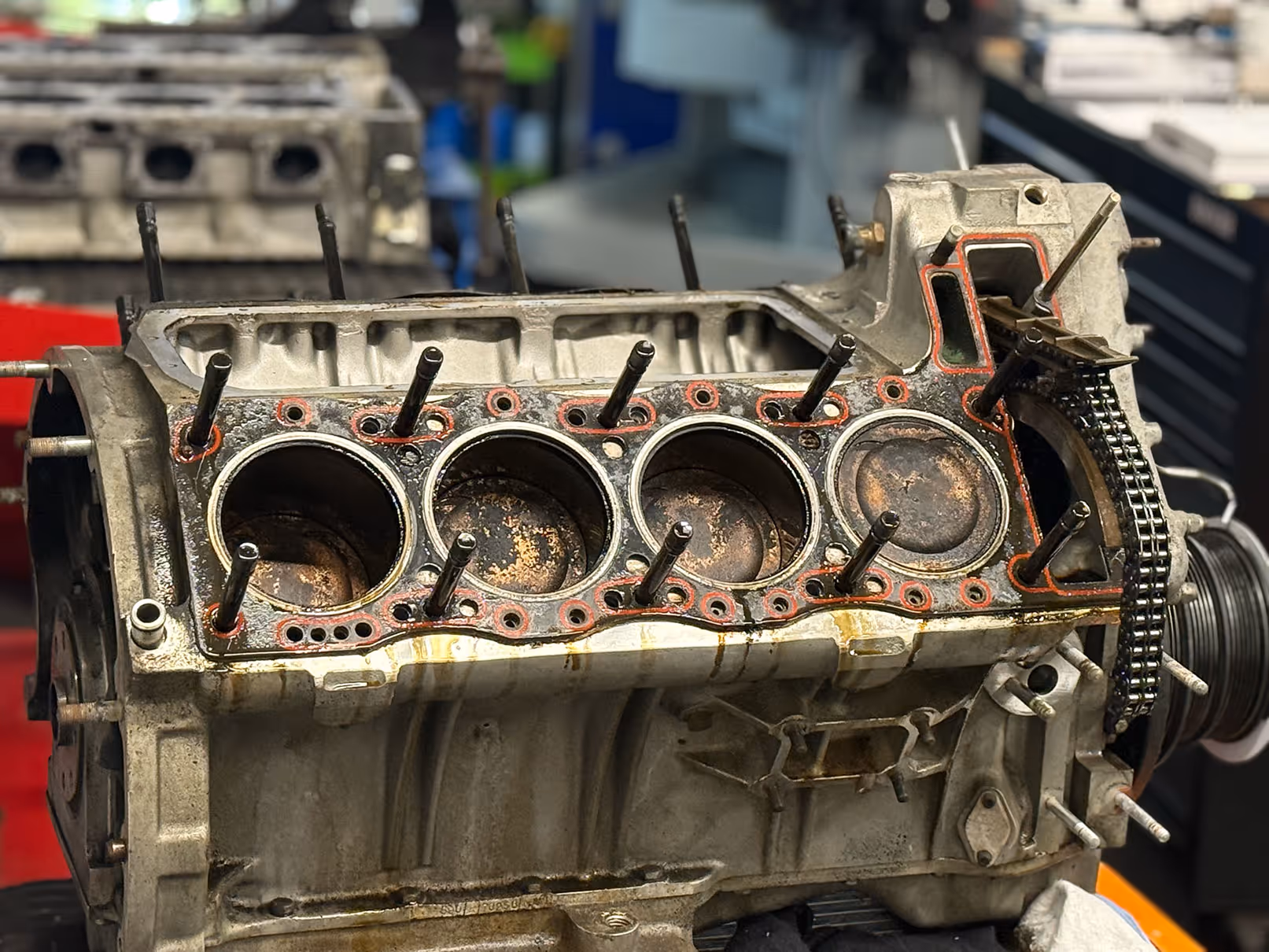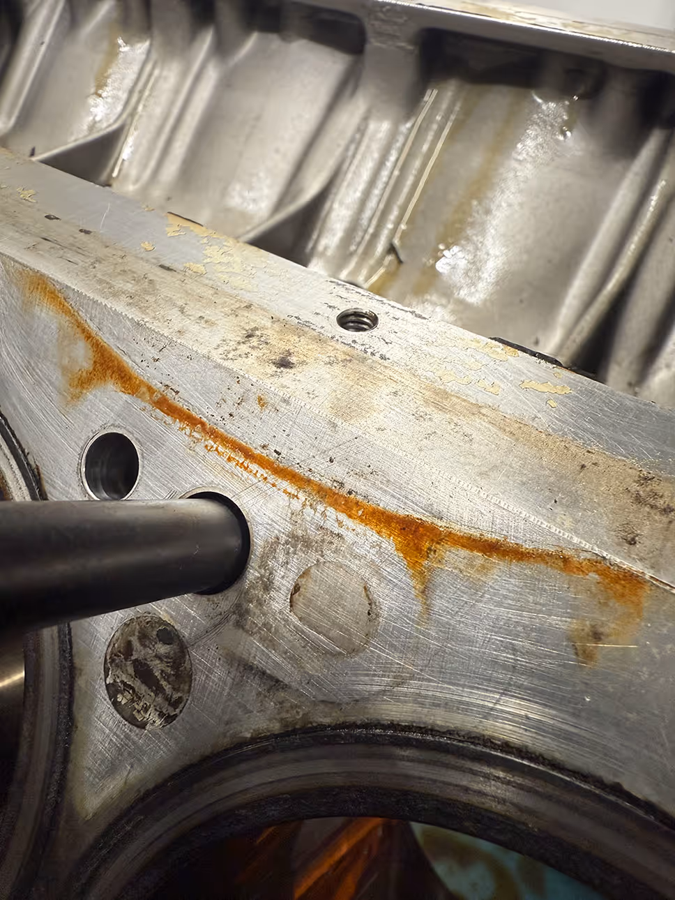 This is not the first time we have encountered a supercharged Vantage engine suffering from leaking liner seals. The rubber "O" rings break down, often beginning with a minor weep before progressing to complete failure. In this instance, inspection revealed that the original rubber had deteriorated entirely.